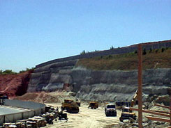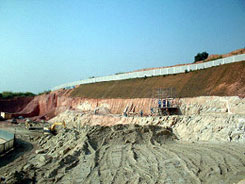Trata-se de um projeto de uma contenção em solo grampeado de um talude de escavação com inclinação de 70°, e altura de 10 a 15m e cerca de 300 m de extensão, em solo silto-arenoso (Granitos), que futuramente será ocupado na crista por edificações e no pé será implantado um supermercado. As fotos a seguir mostram uma vista geral da obra em 2 momentos -- no início da escavação e depois com a contenção em solo grampeado parcialmente executada.