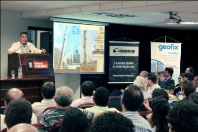 O Núcleo Regional Minas Gerais da ABMS e o Sindicato da Indústria da Construção Civil do Estado de Minas Gerais (Sinduscon-MG), com o apoio da empresa Geofix, realizaram no dia 25 de novembro de 2013 a palestra "Estacas Hélice Contínua: Solução ou Problema", ministrada pelo engenheiro Urbano Rodriguez Alonso - um dos pioneiros na aplicação desse tipo de estacas no Brasil e autor de vários livros sobre Fundações. A palestra, realizada no auditório da Federação das Indústrias do Estado de Minas Gerais (FIEMG), foi sucesso de público com a participação de 155 profissionais. (Foto: Ike Vianna. Clique na imagem para visualizá-la maior)