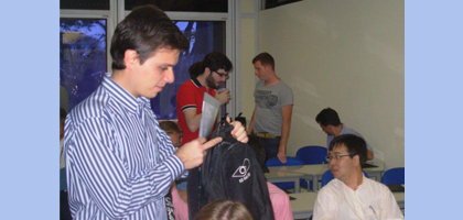 Após manhã e tarde repletas de abordagens técnicas, os participantes puderam relaxar e conhecer mais detalhes sobre as culturas de cada país durante um momento de integração, em um happy hour. "Foram momentos bastante descontraídos", conta Massao. "Os alemães não conheciam a nossa mandioca e tiveram a oportunidade de experimentar aqui, além dos cortes de carnes que eles apreciaram muito. Fora as comparações entre as cervejas servidas no Brasil e na Alemanha, algo que não podia faltar". (Na foto, alunos alemães e brasileiros durante momento de integração) Temas relacionados: